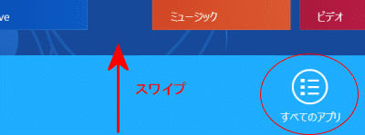 - タッチ操作ではExcel2013のタイルを下方向へスワイプします。下へはじく感じです。