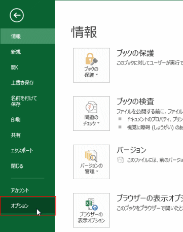 - バックステージビューの[オプション]を選択します。