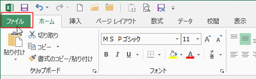 - [ファイル]タブをクリックして、バックステージビューにします。