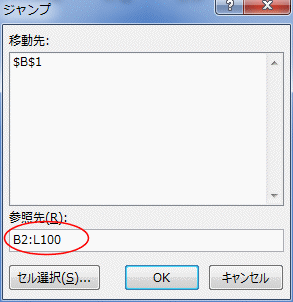 - 広い範囲であれば [F5]キー または [Ctrl]+[G] でジャンプ ダイアログボックスを表示します。