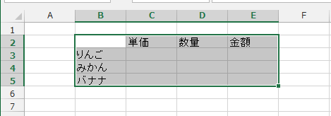 - 狭い範囲であれば、アクティブセルから[Shift]+カーソルキーで範囲選択します。