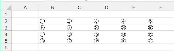 下図は1〜20までの松囲い数字を入力した例です。