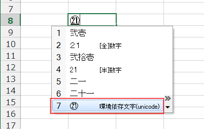 - 1〜20のまで囲み文字は漢字への変換と同じように変換ができます。
