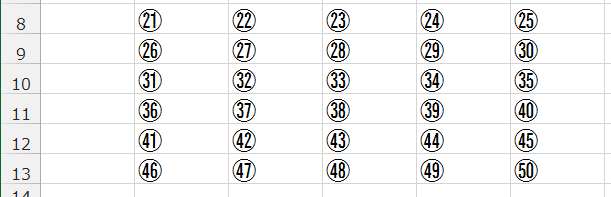 - 同様にして、21〜50の丸囲い数字を入力できました。