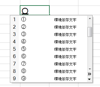 右の一覧表に丸囲み文字が表示されますので、選択して(クリックして)入力することができます。