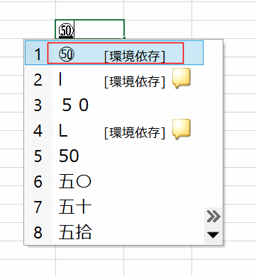 - 1〜50の丸囲い数字は通常に漢字変換で候補として表示されるようになっています。
