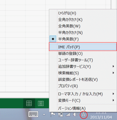 - IMEツールバーのIMEパッドをクリックします。