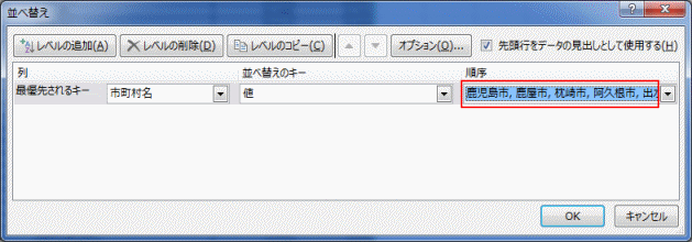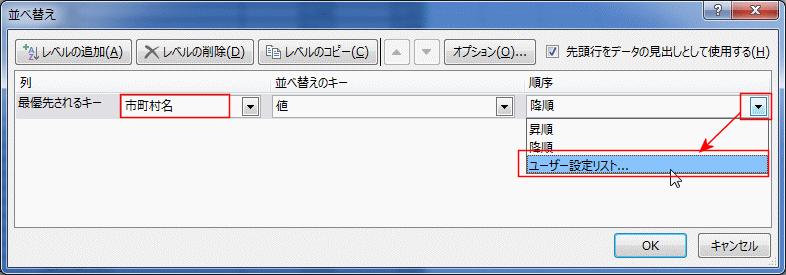 - ユーザー設定リストに登録した順番に並べ替えたいと思います。