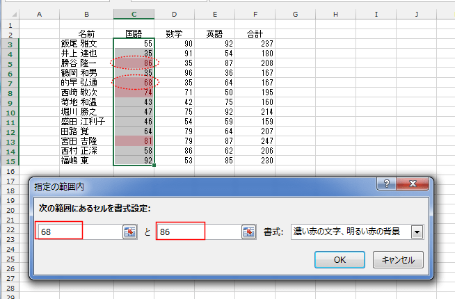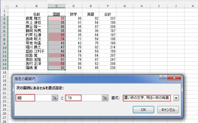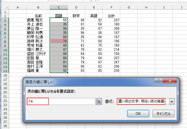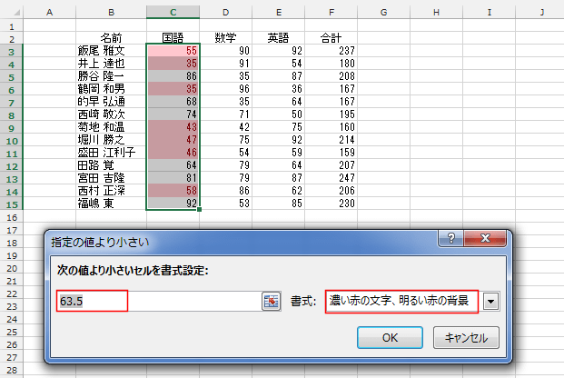 よねさんのExcelとWordの使い方|エクセル2013基本講座:目次|条件付き書式|条件付き書式のセルの強調表示ルール