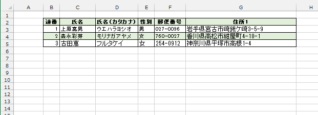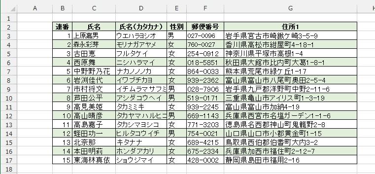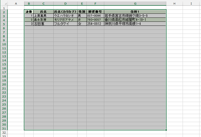 - 不要なデータ(B列の値)をクリア([Delete]キーでクリア)すると、下図のようになります。