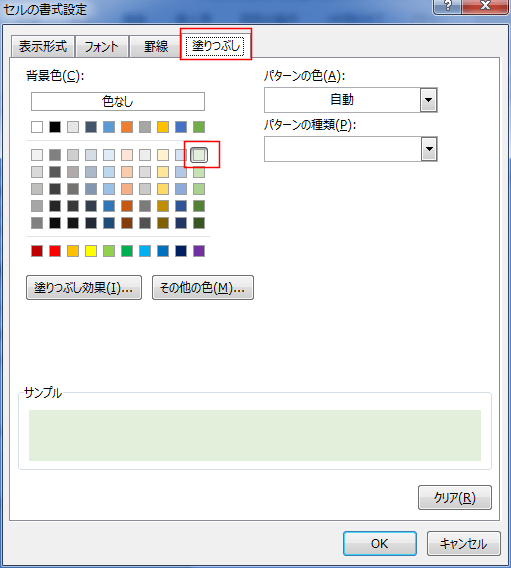 - [塗りつぶし]タブを選択して、「薄いグリーン」を選択しました。