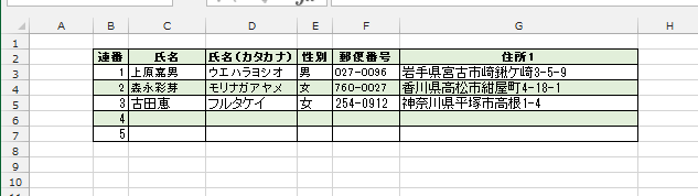 - B6,B7に入力すると、入力した部分に書式が設定されました。