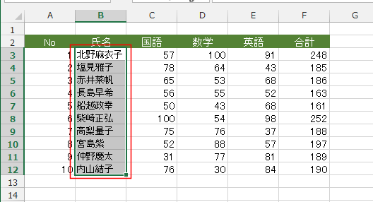 - B3:B12セルを選択しています。