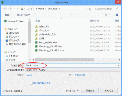 - Excel2013で「名前を付けて保存」ダイアログボックスを表示した例です。