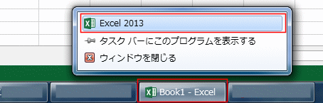 - タスクバーの[Excel2013]ボタンを右クリックします。