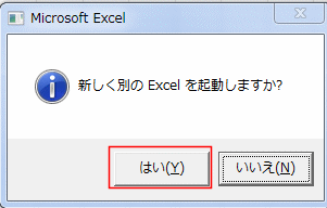 - 「新しく別のExcelを起動しますか?」と表示されたら[はい]ボタンをクリックします。