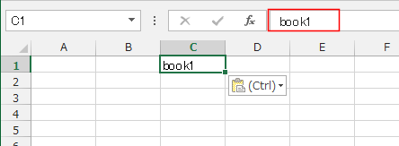 - では、上記の実験例とおなじく、Book1のB1セルをコピーして、新たなExcelのC1セルへ貼り付けてみます。