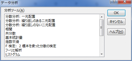 - [データ分析]をクリックするといろいろな分析ツールが使用できます。