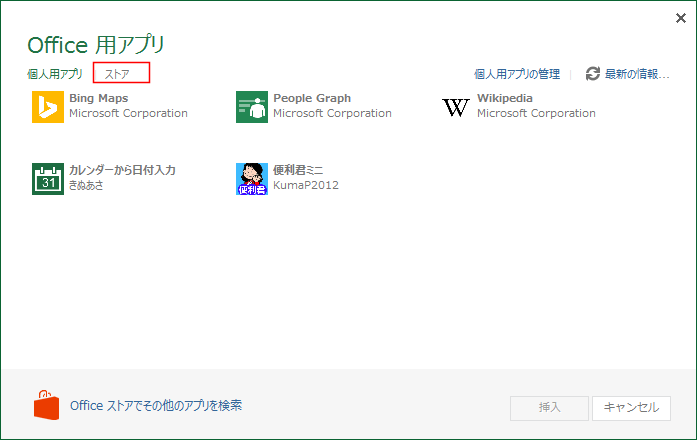 よねさんのExcelとWordの使い方|エクセル2013基本講座:目次|テンプレート・アドインなど|Office用アプリを個人用アプリに登録する