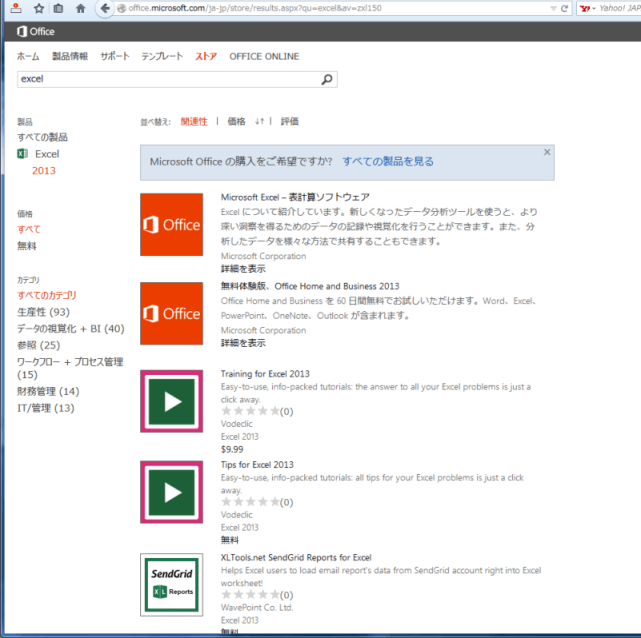 Excel2013の発売当初と現在(2014/7/1)では異なっていますので、現時点での使い方を書いてみます。