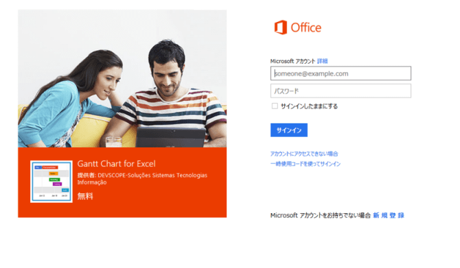 - Excel2013でサインインしていませんので、Microsoftアカウントの入力を求められました。