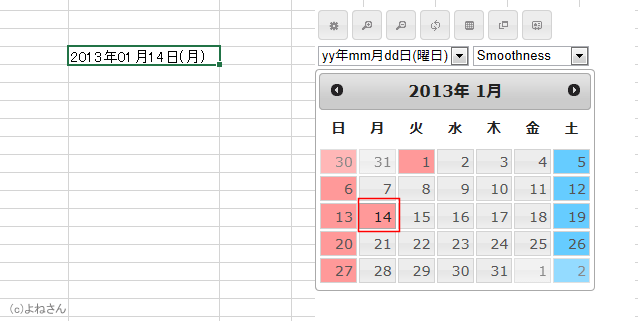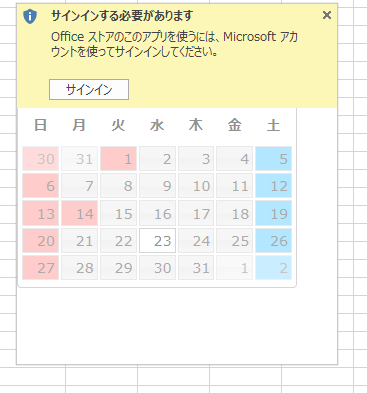 - この「カレンダーから日付入力」というアプリは、選択しているセルにクリックした日付が入力できます。