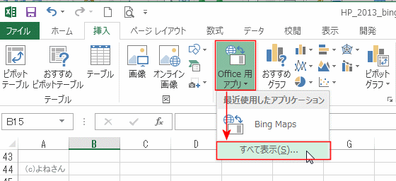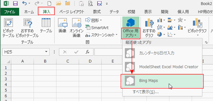 Office 用アプリからBing Mapsを使う