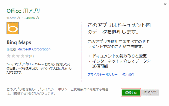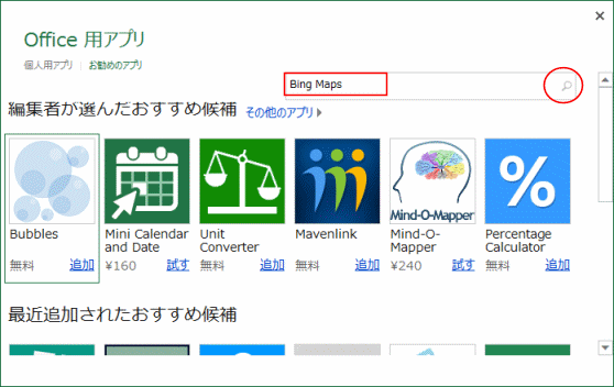 Office用アプリにBing Mapsを登録する Topへ