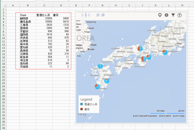 よねさんのExcelとWordの使い方|エクセル2013基本講座:目次|テンプレート・アドインなど|グラフの使い方|BingMapsを使って地図にグラフを表示する