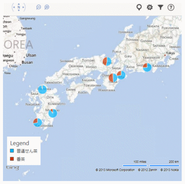- Office用アプリのBing Mapsを使って地図に円グラフを表示してみました。