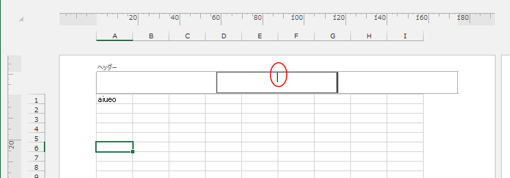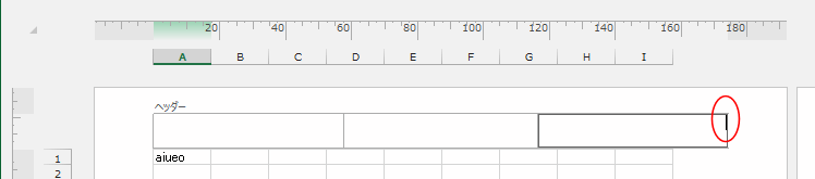下図ではヘッダーの右の部分をクリックして、カーソルを表示しています。