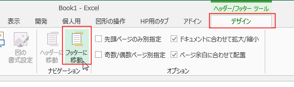 - フッターに入れたい場合は、ヘッダー/フッター ツールの[デザイン]タブで[フッターに移動]を実行します。