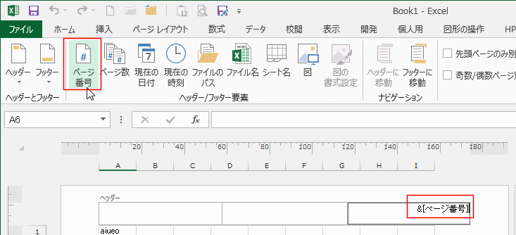 選択してたヘッダー部分に &[ページ番号] と入力されます。