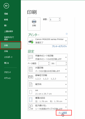 - [OK]ボタンをクリックして、ページ設定の画面を閉じて、バックステージビューに戻ります。