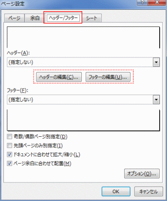 ページ番号を入れたい場所、[ヘッダーの編集]または[フッターの編集]ボタンをクリックします。