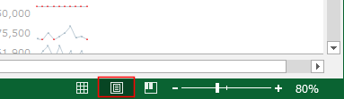 - または、Excelのステータスバーの右端にある[ページレイアウト]ボタンをクリックします。
