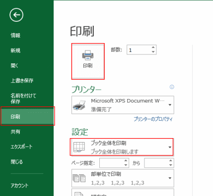 設定で[ブック全体を印刷]を選択します。