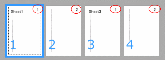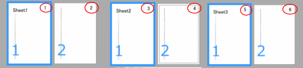 つまり、Sheet1は1ページ、2ページとして、Sheet3も1ページ、2ページとします。