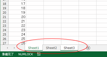 - このページではSheet1、Shee2、Sheet3が各2枚ずつあるブックを使って説明します。