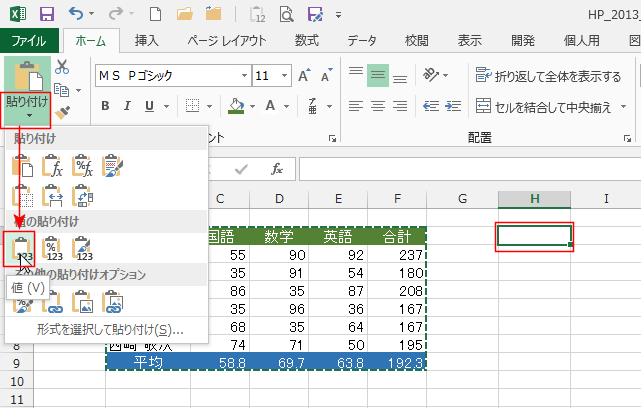 よねさんのExcelとWordの使い方|エクセル2013基本講座:目次|セルの操作|データ/数式/関数の入力|「値の貼り付け」の色々な方法