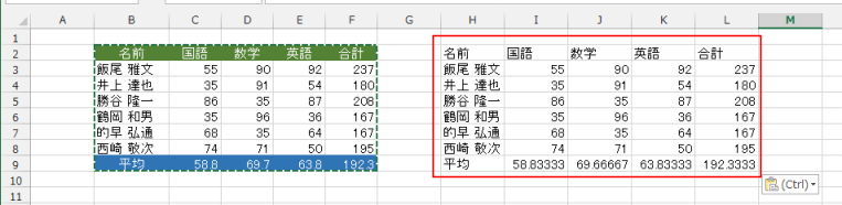 - 貼り付け先のセルをアクティブにして、[Ctrl]+[V]で貼り付けます。
