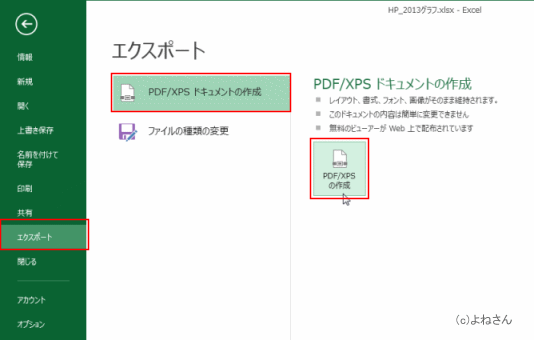 よねさんのExcelとWordの使い方|エクセル2013基本講座|バックステージ ビュー|ブックの操作とブックの共有|Excel2013でPDF/XPS ドキュメントを作成する