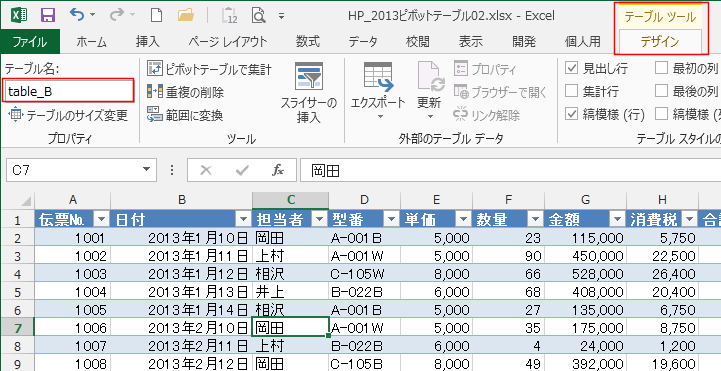 よねさんのExcelとWordの使い方|エクセル2013基本講座:目次|ピボットテーブルとピボットグラフ|ピボットテーブルのデータ範囲を可変にしたい