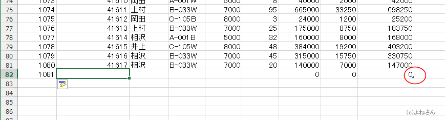 - テーブルの最終行の下にデータを入力しようとすると、自動でテーブル範囲が拡張されます。