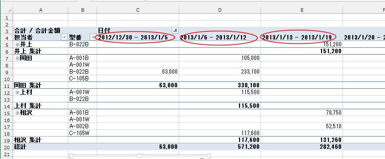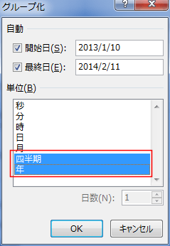 ピボットテーブルの日付のグループ化