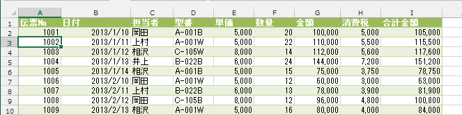 このページではデータの日付が2013年1月〜2014年2月の複数年になっているデータを使って説明します。