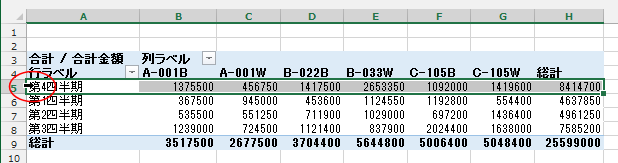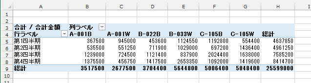 - 四半期ごとのピボットテーブルが作成されます。