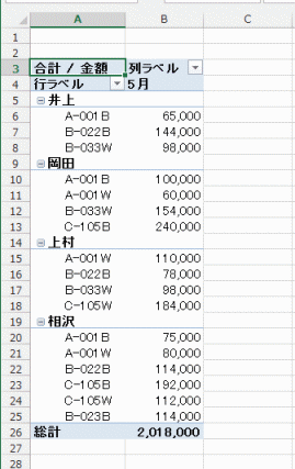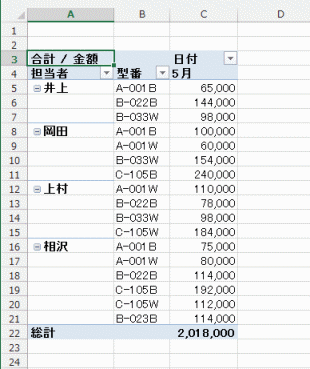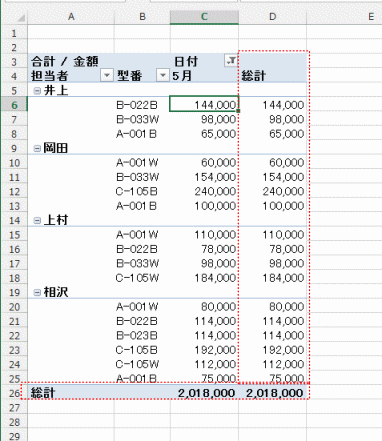 - 行と列の集計を行わない(アウトライン形式で小計を非表示での例です)