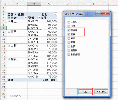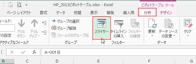 よねさんのExcelとWordの使い方|エクセル2013基本講座:目次|ピボットテーブルとピボットグラフ|ピボットテーブルでスライサーを使う