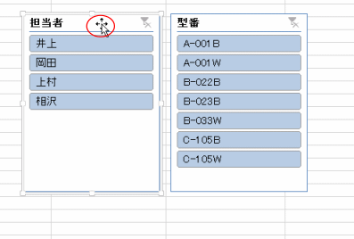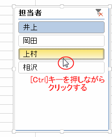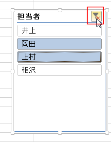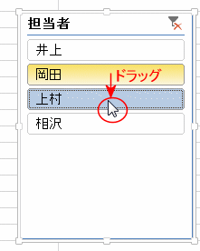 - スライサー内のアイテムを選択する方法(シートのセルの選択と同様の操作方法です)